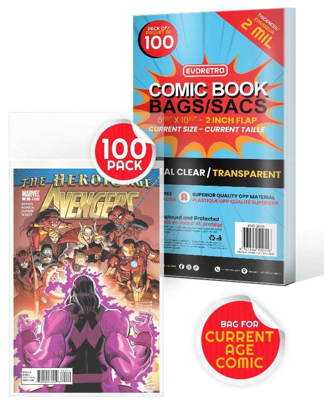 If you're an avid comic collector who has a huge collection of back issues or simply have a few comic books lying around, you'll never have to worry about their safety again! EVORETRO comic bags are made from 2 mil thick, clear, durable, and acid-free OPP plastic to keep your favorite series safe from dust, moisture, and damage, keeping them pristine and looking like new!