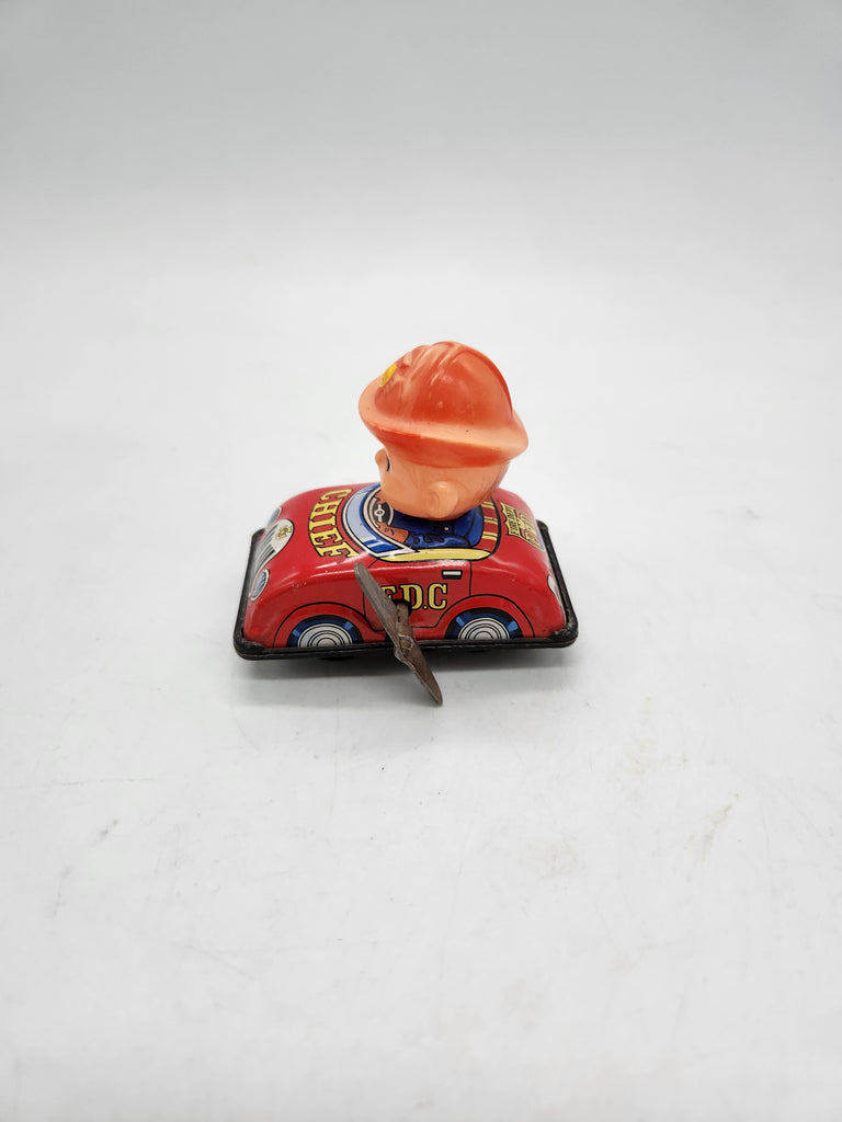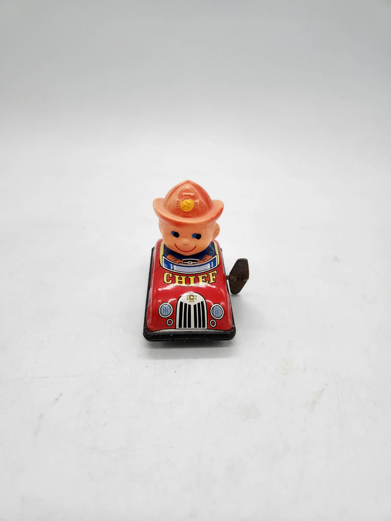 Yone Japan tin lithograph wind-up Fire Chief toy,1950s.
