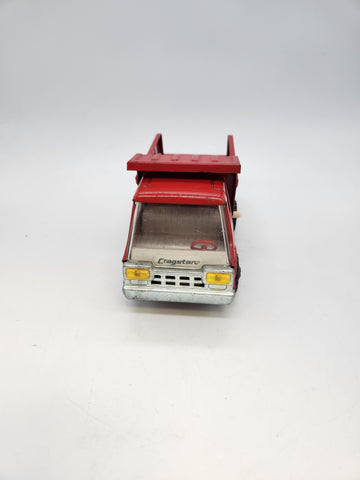 Cragstan 8" Dump Truck Red Dump Bed works unmarked Made in Japan Pressed Steel.