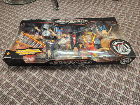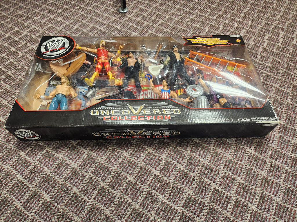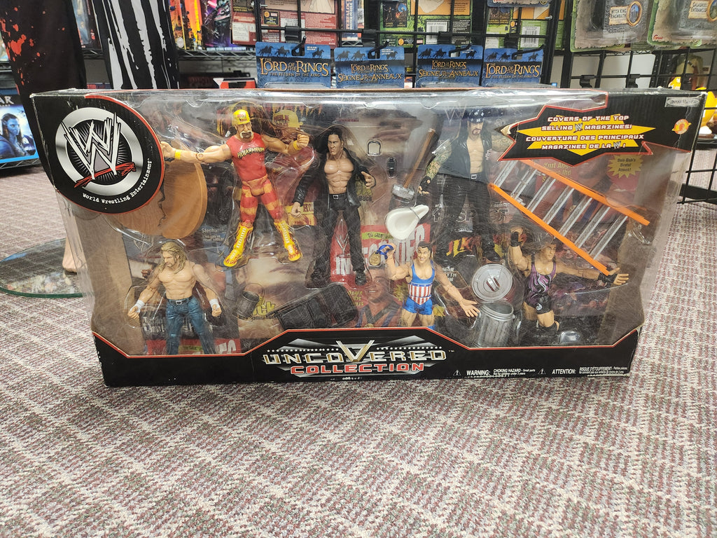 Triple H, Hollywood Hulk Hogan, The Rock, Kurt Angle, Undertaker & Rob Van Dam. Never opened, tape on 1 end, let go.